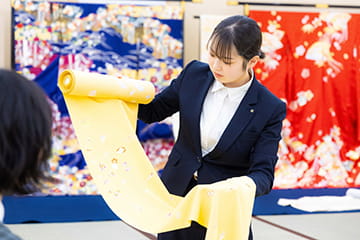 接客、おもてなしについての座学です。就職活動にも役立つマナーなどあるかも?