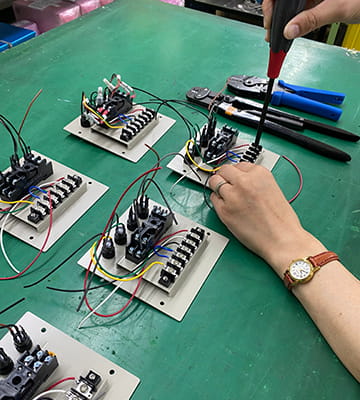 ケーブルの被膜を剥いて芯線を出し、コンセントへ接続する。ケーブルストリッパーやドライバー、ペンチを使用し作業していただきます。
